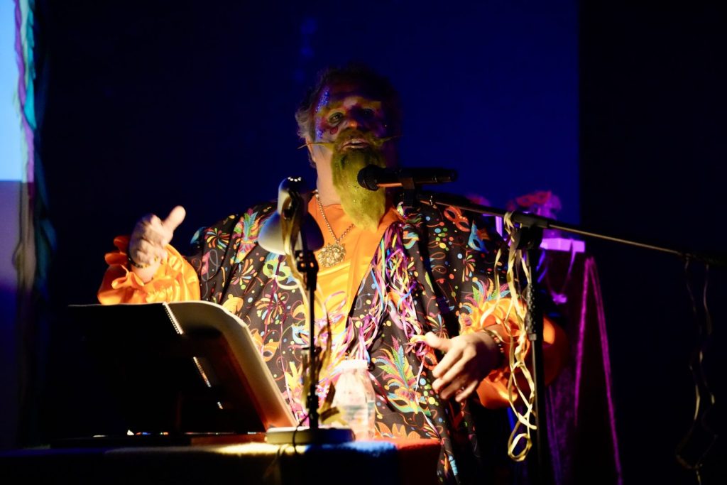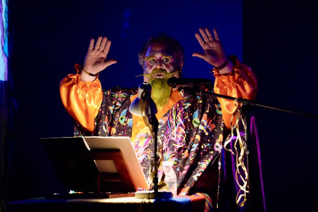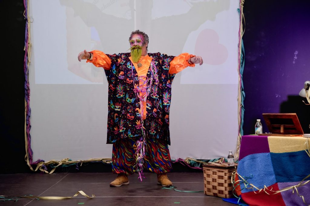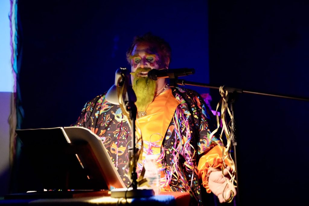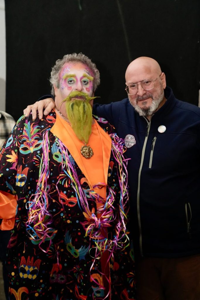 Al finalizar el pregón, su propio hijo y socio de la asociación carnavalera barreña, Alberto Ortega, le entregó la escultura representativa de la entidad, la Montera del Torero con más mascara y adornos carnaveleros