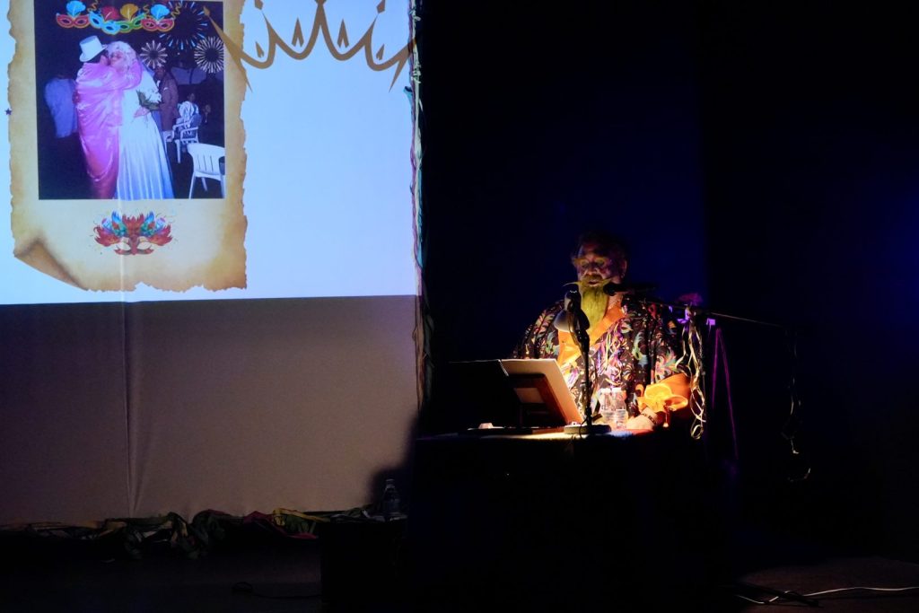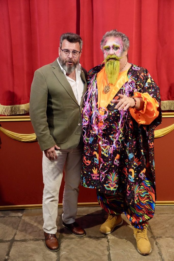 “En 1996 y entre esta locura, aparece por primera vez la figura del Dios Momo del carnaval, que encarna a la perfección. Idea que surge por parte del concejal de cultura y festejos en esos años nuestro querido Manolo Tocón”.