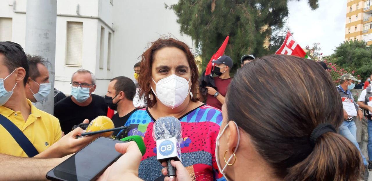 La portavoz adjunta del grupo parlamentario Adelante Andalucía, Ángela Aguilera, ha anunciado hoy que su formación política se dirigirá al Ministerio de Trabajo para que se pronuncie sobre el despido de 13 trabajadores de la empresa Phoenix en el Campo de Gibraltar y la resolución de la Inspección de Trabajo que mandata claramente la subrogación de esta plantilla. Aguilera ha explicado que será la senadora de Adelante Andalucía, Pilar González, la que interpelará al Ministerio sobre esta cuestión. “El Campo de Gibraltar no puede seguir sosteniendo una pérdida de empleo de estos niveles. El COVID19 no puede ser permanentemente la justificación para echar a la calle a padres de familia que tienen un derecho adquirido, que es su permanencia en el empleo”, ha manifestado durante la manifestación de los trabajadores a los que ha acompañado hoy en Algeciras.