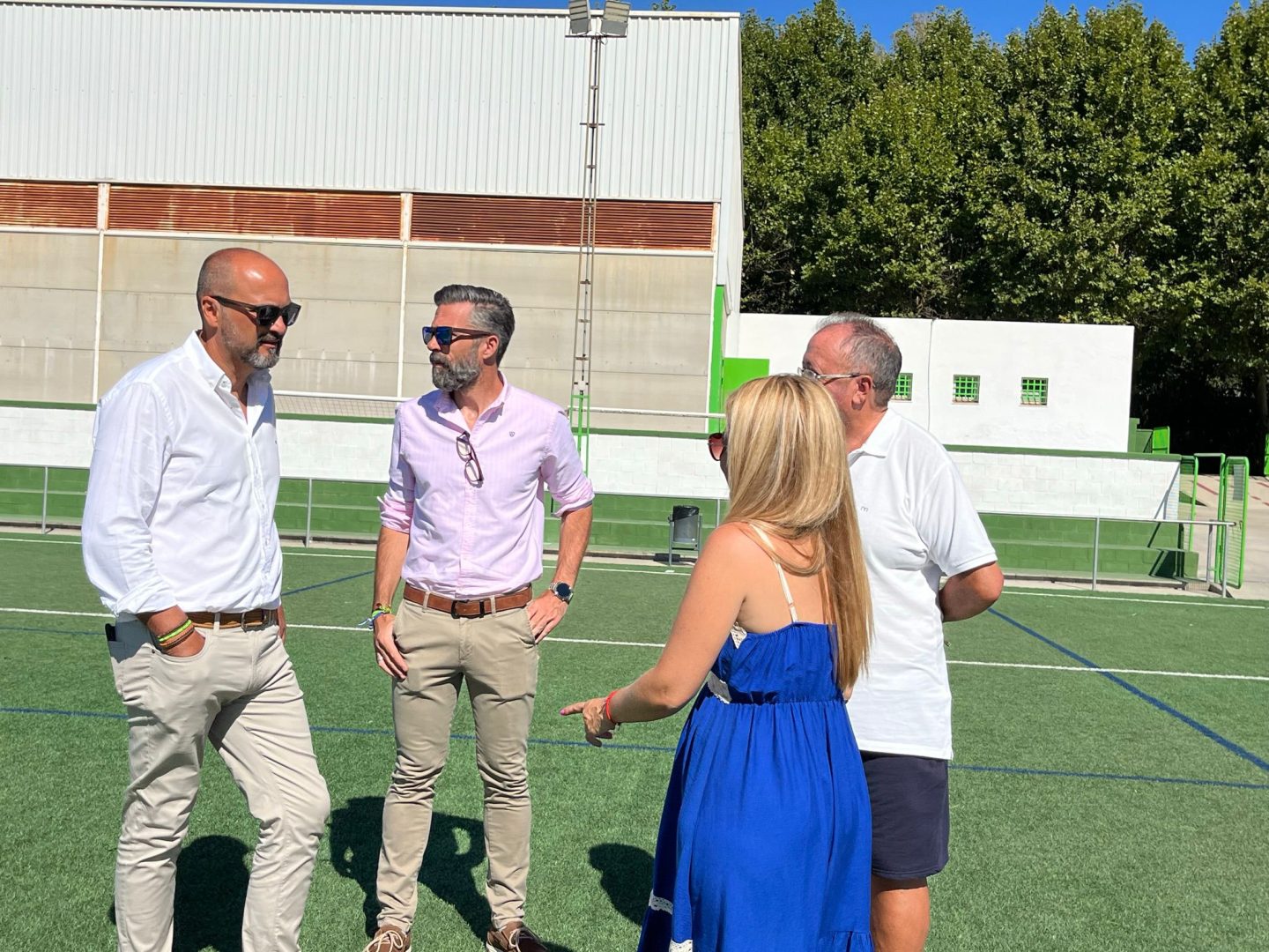 Alconchel visita la nueva obra que se ha realizado en el campo de fútbol ‘Antonio Gavira’ de Los Cortijillos
