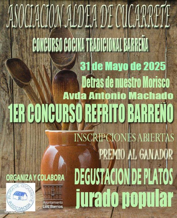 El presidente de la asociación ‘Aldea de Cucarrete’, Juan Rojas ha indicado que el Concurso de Cocina Tradicional Barreña con la primera edición del Concurso de Refrito Barreño y que premiará al mejor refrito. Esta cita gastronómica estaba prevista para el pasado mes de marzo y se tuvo que suspender por previsión de lluvias.