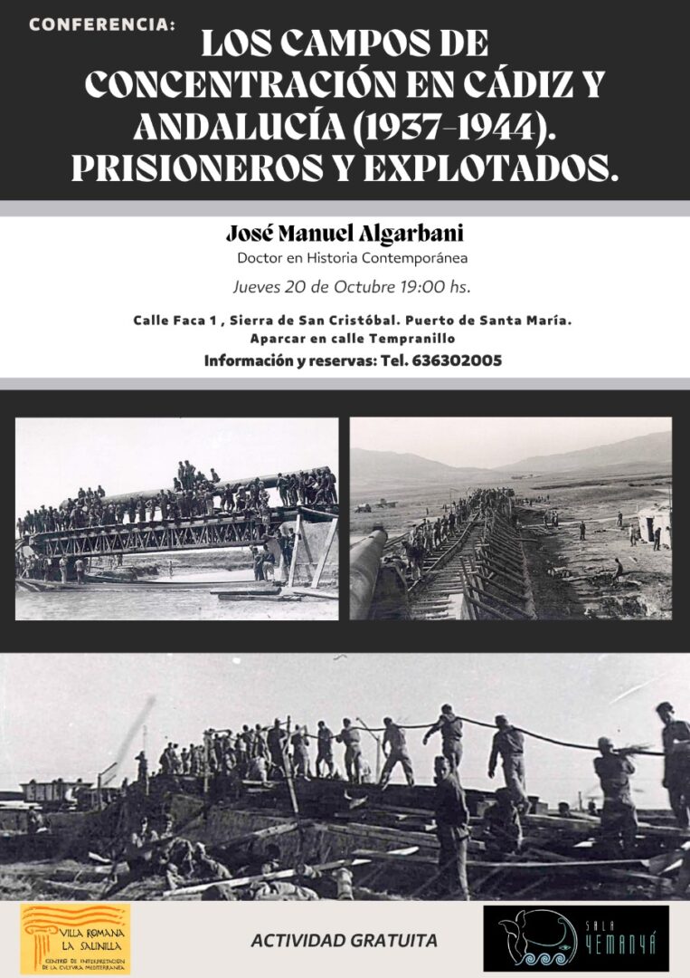 La charla que tendrá lugar a las 19:00, versará sobre los campos de concentración que se ubicaron en la provincia de Cádiz y en Andalucía, en la dura posguerra española, y que funcionaron con los prisioneros del ejército republicano vencido entre 1937 y 1944.