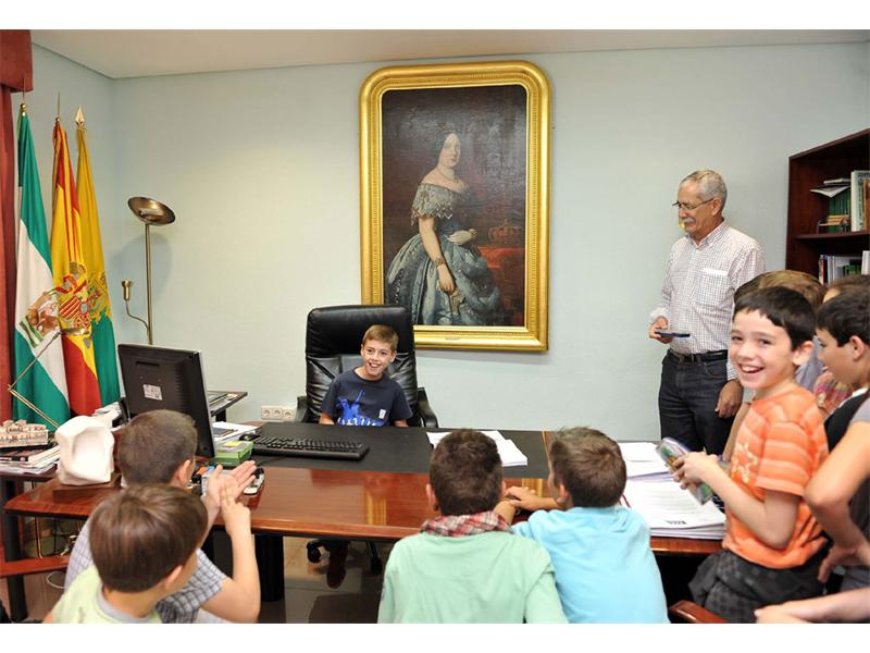 Los alumnos han sido recibidos por el alcalde en funciones de la Villa, Juan Montedeoca, quien los ha recibido en su despacho y les ha hecho entrega de un pequeño detalle.