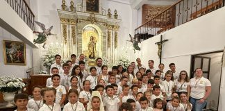 Niños y niñas protagonistas de la procesión infantil de la Virgen...