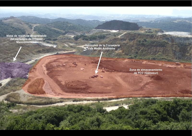 “A mediados de junio del pasado año (2013), ocurrió otro deslizamiento de un talud de residuos del vertedero de RSU gestionado por Urbaser, el derrumbe se produjo justo en los limites con el vertedero de residuos industriales de FCC (Gamasur). Este