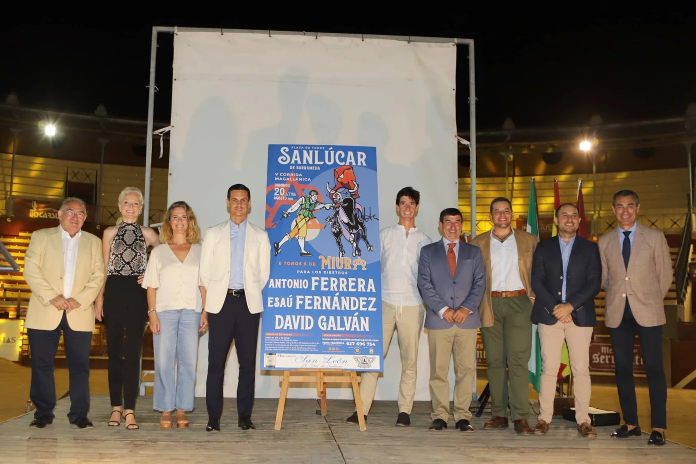 La revelación del cartel ha estado precedida por la proyección del diseño de la ‘Alfombra de Sal Magallánica’ –“25.000 km de sal cubrirán el ruedo”, obra del artista Joaquín Lara. Además se proyectó un documental de los toros de Miura que se van a lidiar en tan emblemática corrida.