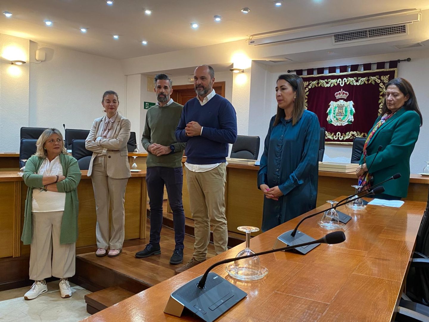 El alcalde Miguel Alconchel presidió un acto en el salón de plenos para rendir homenaje a seis profesionales de la educación que culminan su carrera tras décadas de servicio en centros del municipio.