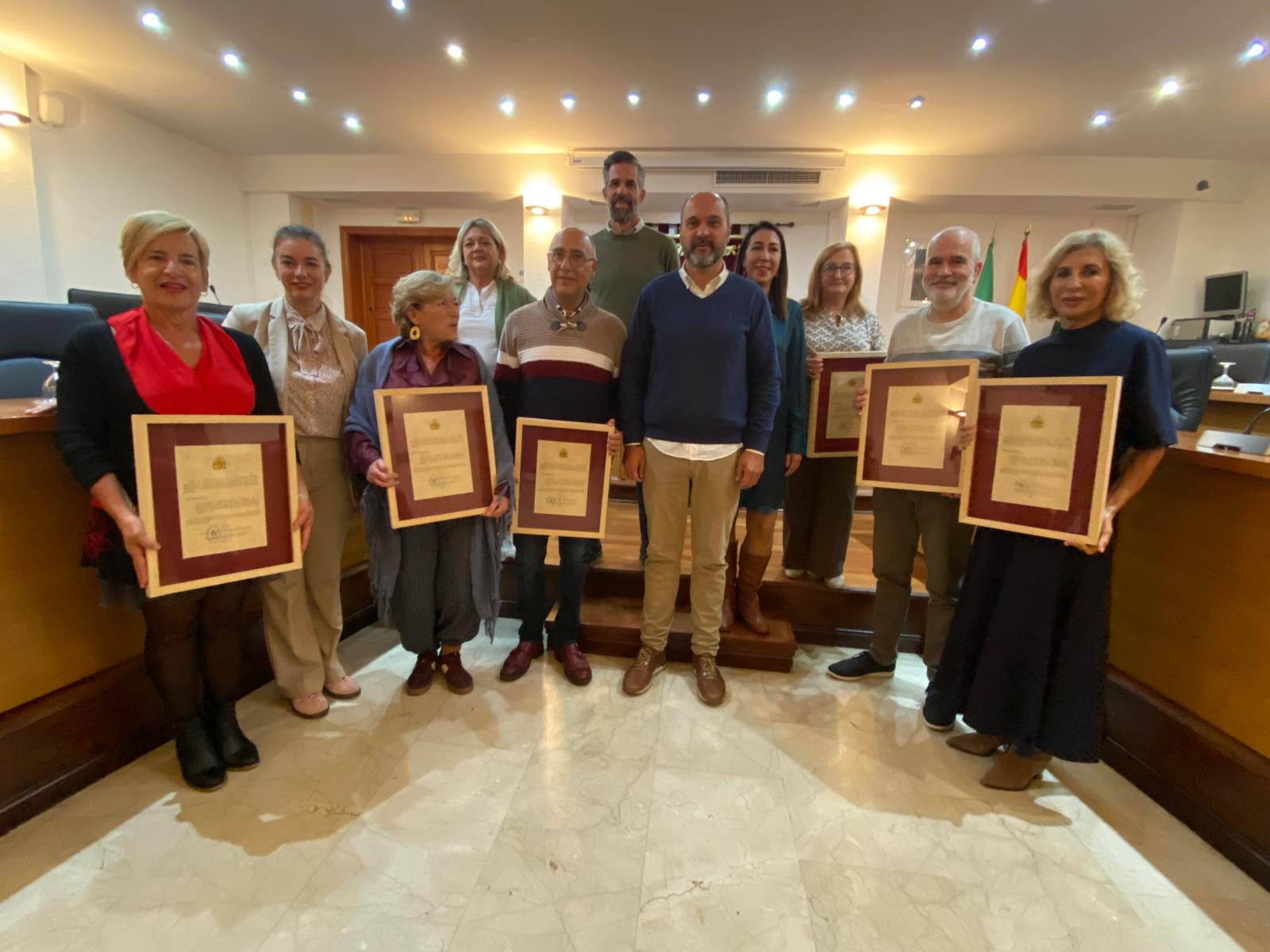 Los homenajeados fueron Antonio Moreno Manrique y María José Urbano Flores, del I.E.S. Carlos Cano; José Royan Benítez e Inmaculada Cuesta Domínguez, del I.E.S. Sierra Luna; Rosario Olivares Martín, del CEIP Luis Lamadrid; y Filomena Muñoz Secilla, de la Escuela Infantil Los Alcornocales.