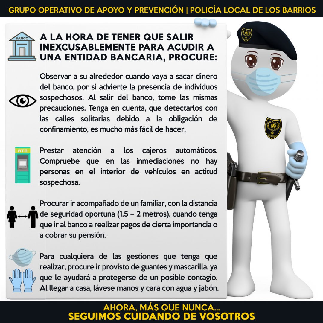 También este grupo de la Policía Local barreña ha ofrecido una serie de consejos a la hora de salir inexcusablemente para acudir a una entidad bancaria.