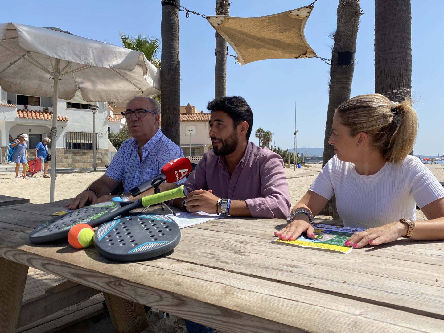 La playa de Palmones será escenario del II Torneo de Tenis-Playa el domingo 20 de agosto, a partir de las 10 de la mañana. El cartel de este evento ha sido presentado hoy en el chiringuito ‘El Garito’ por el delegado de Juventud, Antonio Dávila, junto al delegado de Palmones, José Antonio Gómez, y la delegada de Deportes, May Gallego.