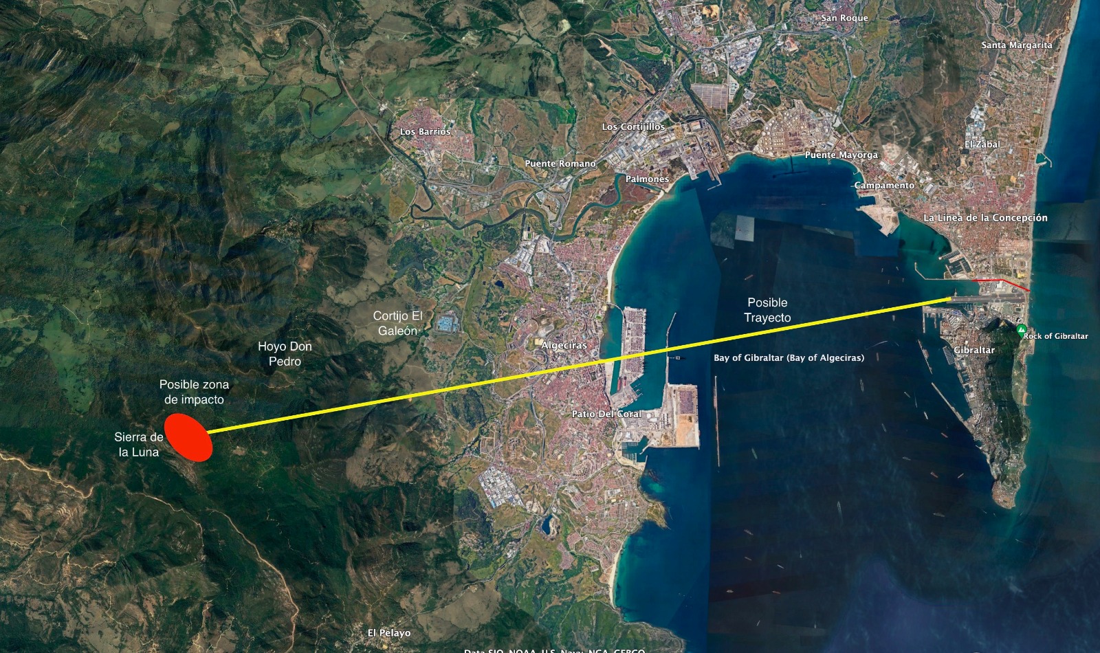 Si tenemos en cuenta que el informe hace mención a una cota de 2500-3000 pies, una línea recta trazada desde el aeropuerto de Gibraltar (orientado hacia el Oeste) y que se dirija al término de Los Barrios, sería casi coincidente con el área denominada Hoyo Don Pedro, salvo que, en este caso, las alturas existentes son de unos 550 metros aproximadamente, algo menos de 2000 pies, es decir, muy por debajo de la altura que obra en el informe antes mencionado.
