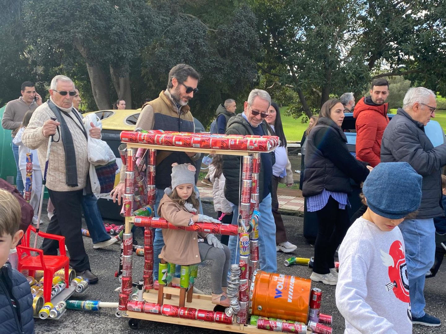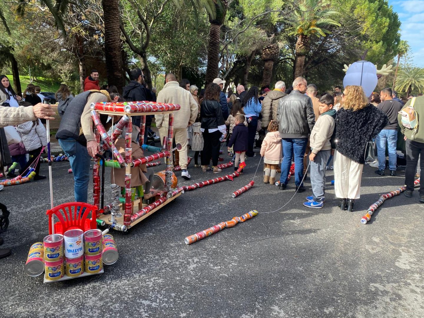 El recorrido se ha iniciado a primera hora de la mañana, extendiendo el característico estruendo metálico por enclaves emblemáticos del municipio como el Parque del Tren, el Parque Botánico, la rotonda del toro y la avenida Doña Rosa. La marea infantil (ver vídeo), armada con ristras de latas y complejas estructuras de material reciclado, ha avanzado con entusiasmo hasta culminar en el polideportivo San Rafael, punto de encuentro donde la música y la convivencia familiar han tomado el relevo al ruido de los envases.