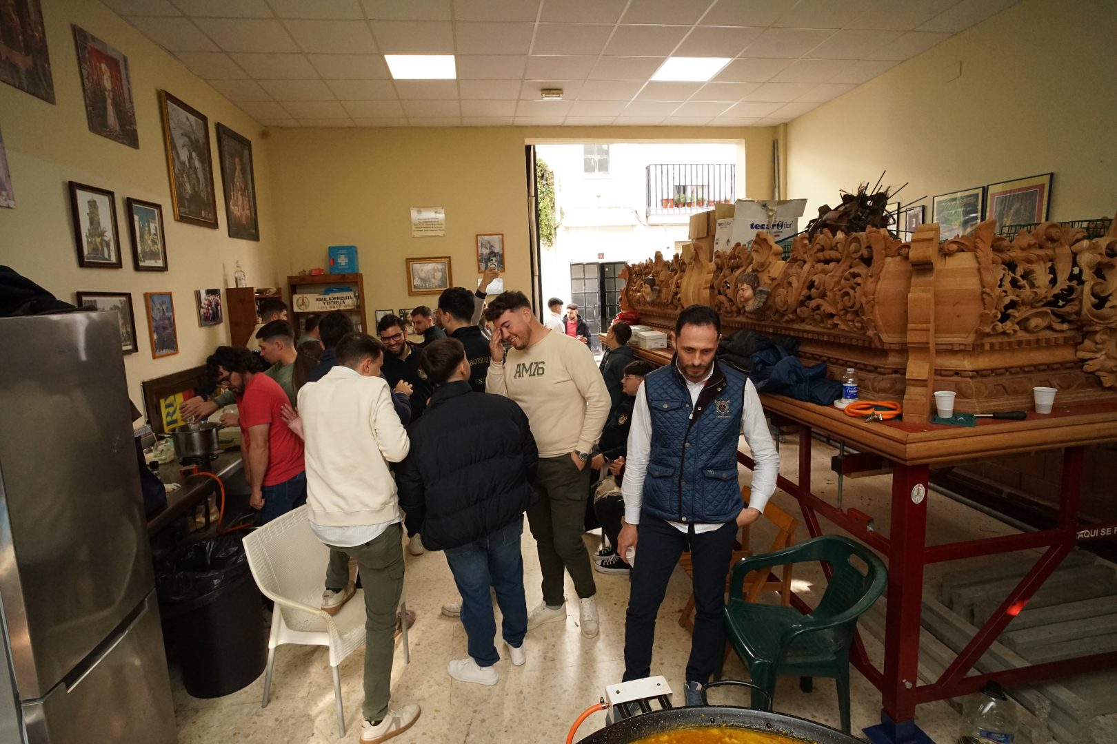 La Hermandad de la Borriquita y Estrella llevó a cabo este sábado la igualá de la cuadrilla de costaleros del paso de Cristo, un acto fundamental de cara a la preparación de la próxima estación de penitencia. Durante el acto, los responsables del martillo procedieron a la medición de los hombres y a la organización de las trabajaderas, asegurando la correcta formación de la cuadrilla para el próximo Domingo de Ramos. El broche de oro a la jornada lo puso una paella gratuita para todos los presentes