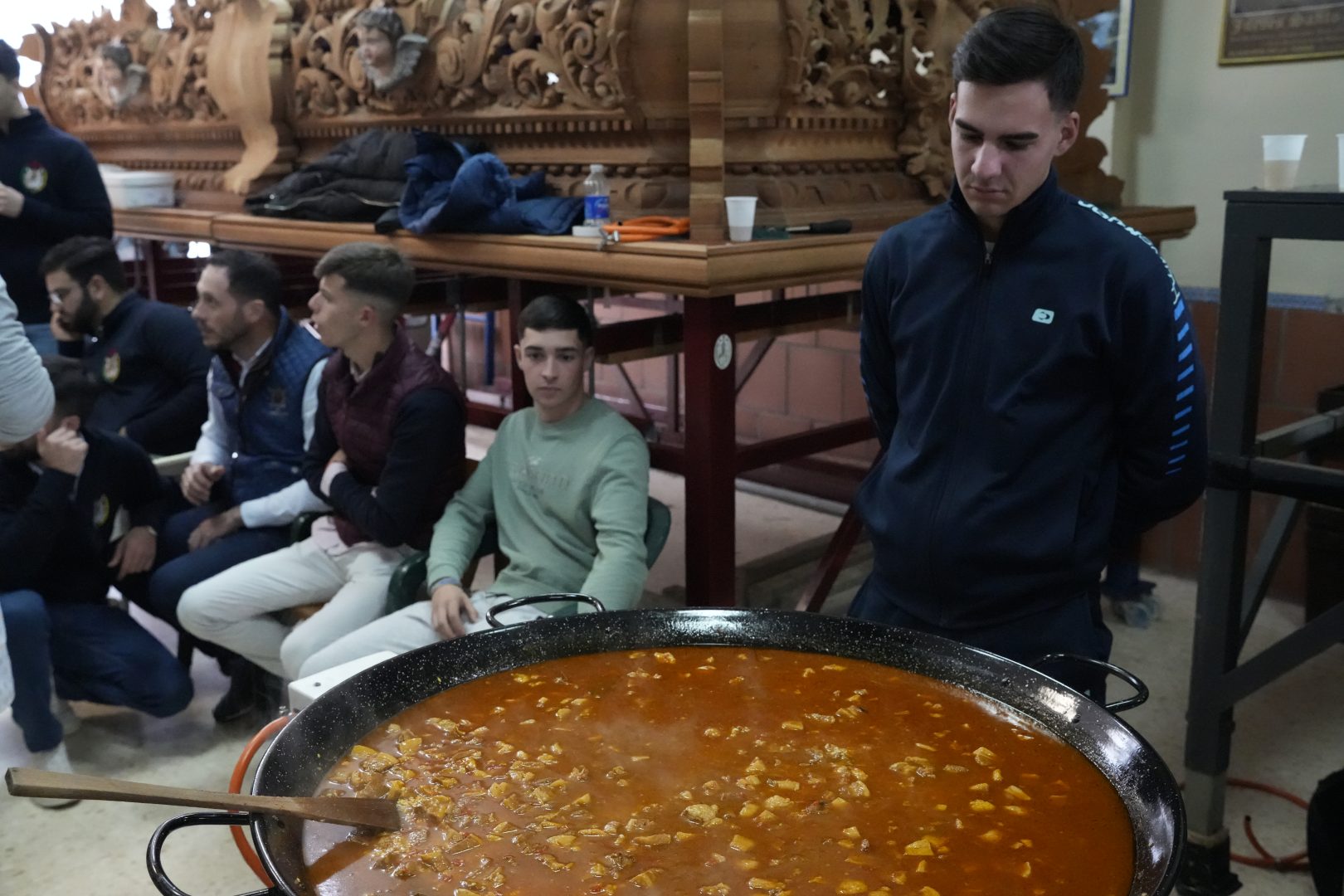 La Hermandad de la Borriquita y Estrella llevó a cabo este sábado la igualá de la cuadrilla de costaleros del paso de Cristo, un acto fundamental de cara a la preparación de la próxima estación de penitencia. Durante el acto, los responsables del martillo procedieron a la medición de los hombres y a la organización de las trabajaderas, asegurando la correcta formación de la cuadrilla para el próximo Domingo de Ramos. El broche de oro a la jornada lo puso una paella gratuita para todos los presentes