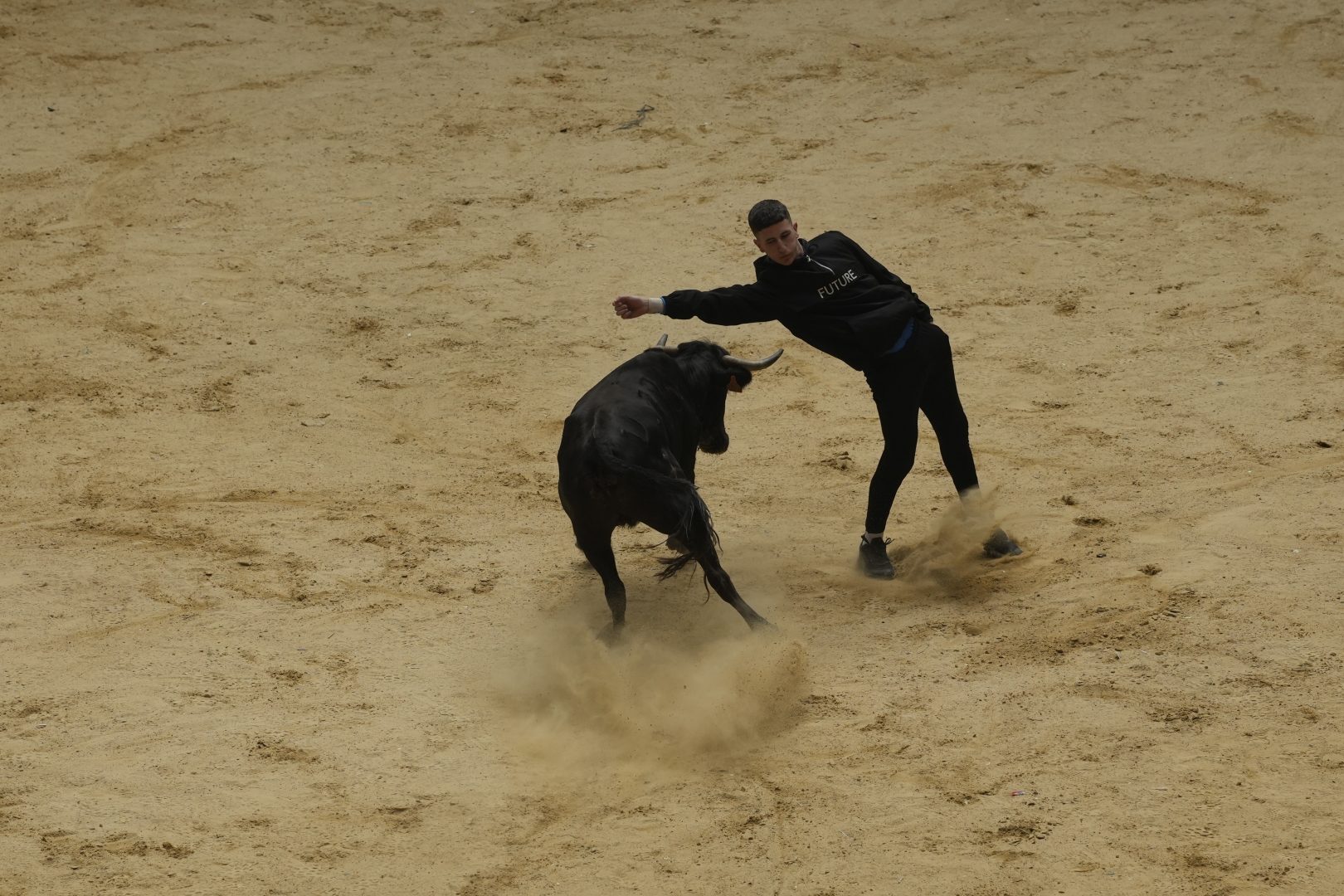El segundo encierro se ha llevado a cabo después de las 13:00 horas con “Jugador”, de la ganadería de Núñez del Cuvillo, y a continuación se han liberado también sobre la arena de la plaza otras dos vaquillas para diversión de los participantes más osados y de los numerosos espectadores que han acudido a este evento.