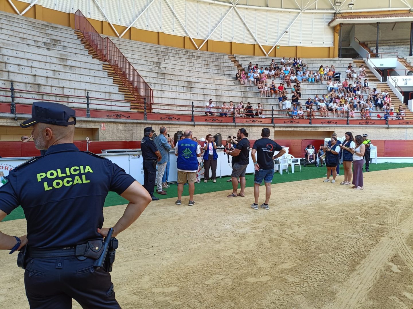 El alcalde de Los Barrios, Miguel Alconchel; la delegada de Participación Ciudadana, Sara Lobato; junto al concejal de Seguridad Ciudadana, Antonio Dávila; y la concejala de Protección Civil, Geli Ferral, han asistido a esta exhibición, además de la presidenta de ‘Por Una Sonrisa’, Eva Ledesma, y voluntarios del proyecto.