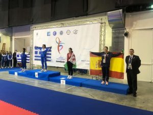 El taekwondo barreño, representado en esta cita por siete competidores, ha logrado ya una medalla de bronce en la categoría de Tuls Femenino adulto IV Dan, de la mano de Claudia Díaz. Además, los restantes miembros del equipo han llevado a cabo toda una meritoria actuación, quedando a un paso de subir al podio.