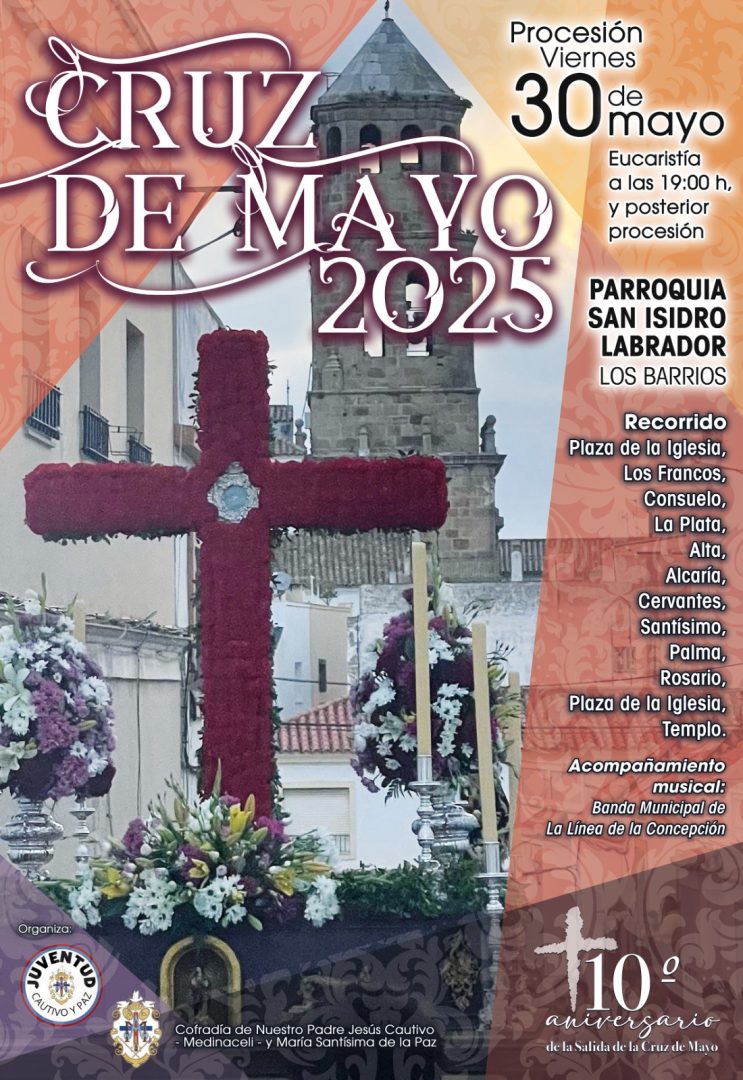 El próximo viernes 30 de mayo la cofradía del Medinaceli realizará la tradicional Cruz de Mayo por las calles de la villa. Este año se cumple el décimo aniversario de estas salidas procesionales de la Cofradía. La Eucaristía será a las 19:00 horas y, a continuación, la procesión.