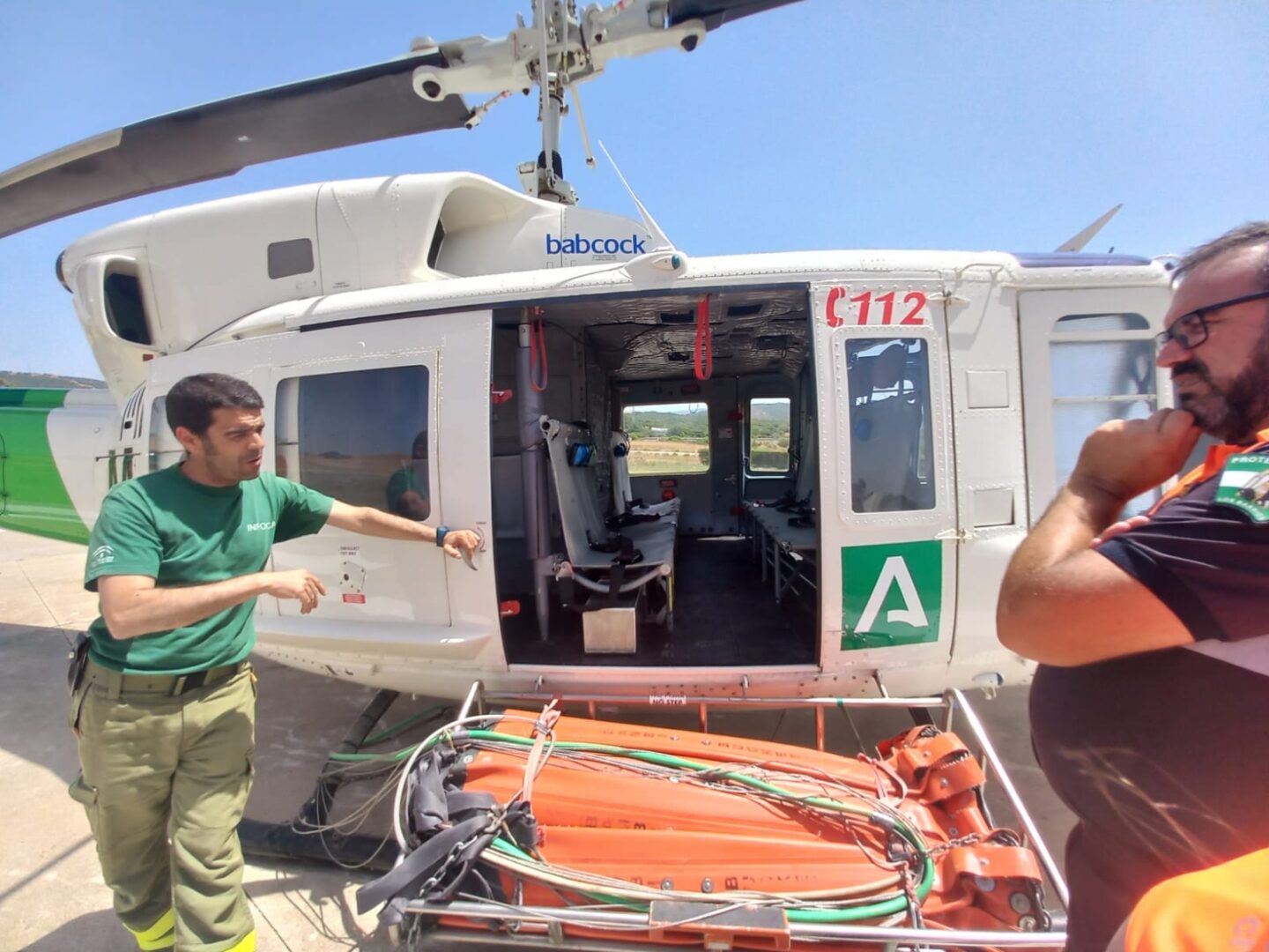 Miguel Ángel Ríos coordinador de la Agrupación Local de Protección Civil de Los Barrios, unto a otros voluntarios.