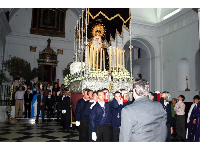 Ante los aplausos de los muchos fieles presentes la Iglesia las imagenes del Nazareno y Nuestra Señora de los Dolores realizaron una Levantá en el interior del Templo cuando un aguacero comenzaba a caer incesantemente en el exterior.