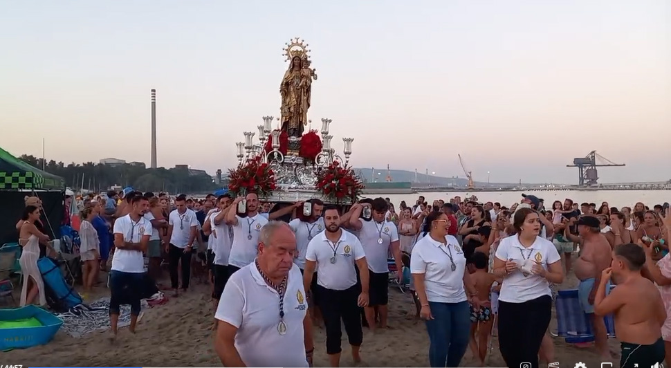 El acto central: la procesión en el mar y su recorrido La procesión comienza en la parroquia La Pura y Limpia Concepción, desde donde la imagen de la Virgen del Carmen sale en una solemne procesión por la avenida Andalucía acompañada delos sones de la Banda de Música Soledad de La Algaba (Sevilla). Luego, en un momento emotivo, la imagen es llevada en una embarcación y acompañada por barcos decorados con banderas y flores, que recorren las aguas del río Palmones. La procesión en el mar es un espectáculo lleno de fe y esperanza, con cánticos y rezos que unen a toda la comunidad. Al regresar, la imagen es desembarcada en la playa, donde el trono o paso de la Virgen es portado también por mujeres hasta la llegada al templo, tras realizar una parada en los diferentes altares que se instalan a lo largo del recorrido, en un acto que simboliza la participación activa y la devoción de toda la comunidad. Este regreso en procesión es un momento muy especial, lleno de emoción y tradición.