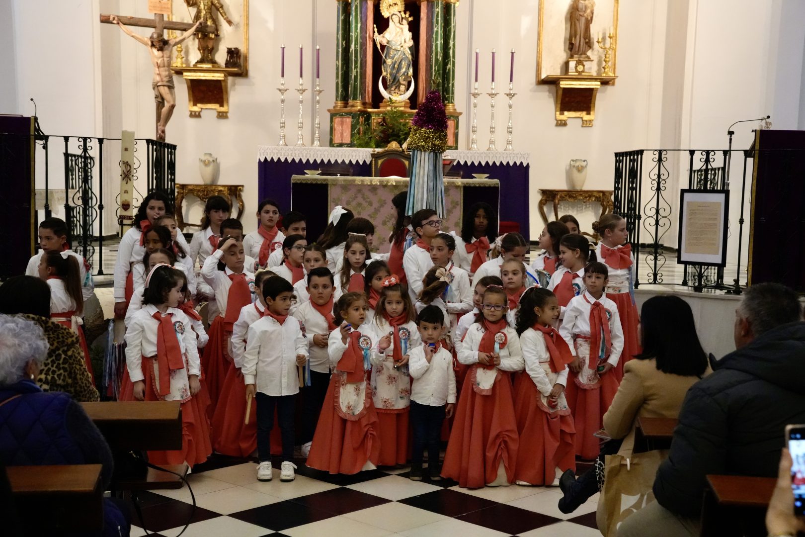 Tras la celebración de la Eucaristía, la Hermandad de Nuestro Padre Jesús en su Sagrada y Triunfal Entrada en Jerusalén y María Santísima de la Estrella presentó la actuación de su rondalla infantil, que interpretó villancicos y llevó el espíritu navideño a los presentes en la parroquia barreña.