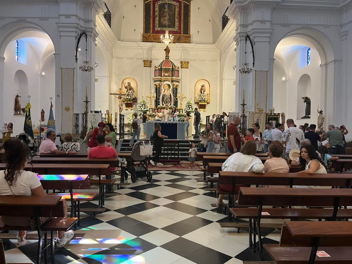 Uno de los momentos más emotivos de la jornada de hoy se vivió en la parroquia de San Isidro Labrador, donde tuvo lugar la presentación ante la Patrona de Los Barrios, Nuestra Señora del Rosario, de los niños y niñas nacidos durante el último año.
