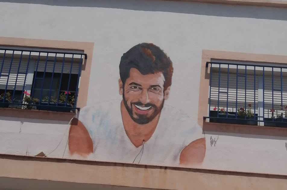 Desde ayer, en la calle Nueva número 27 en Los Barrios, se puede ver el rostro del actor de telenovelas Can Yaman en la fachada de una de sus viviendas.