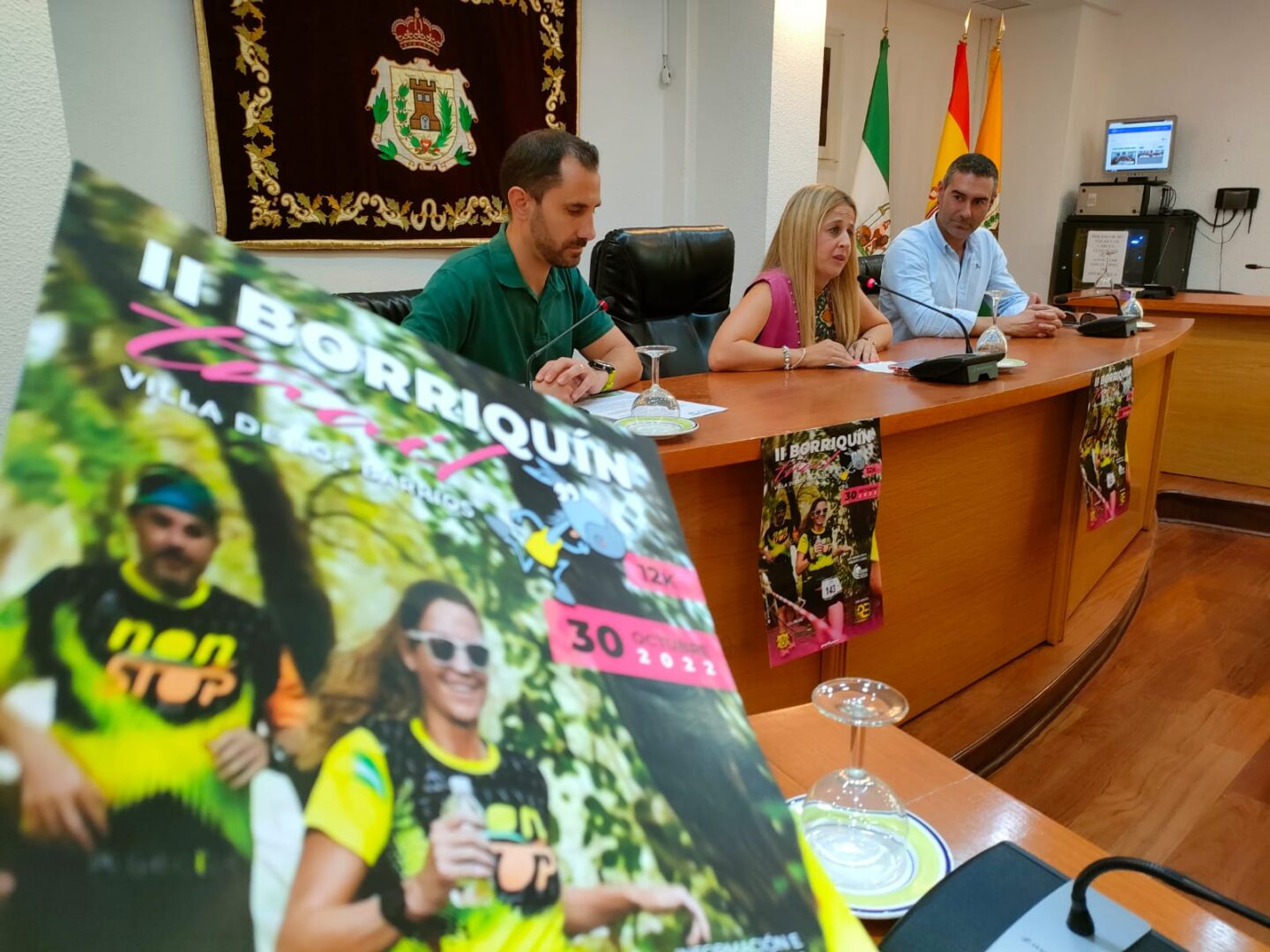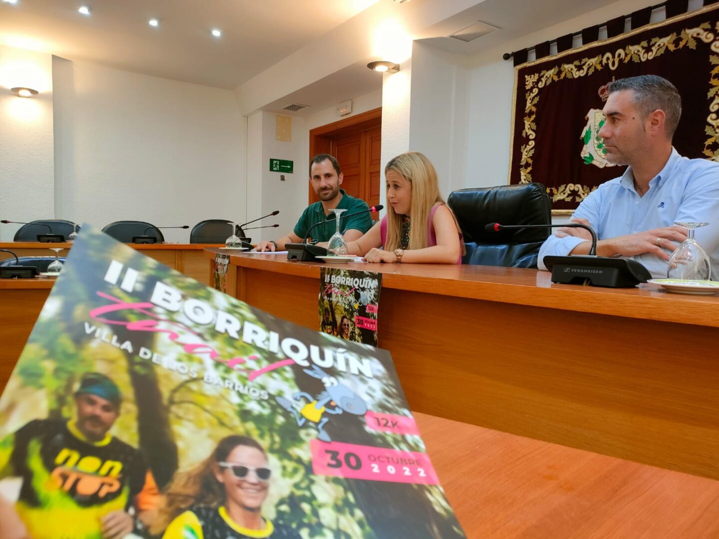 La delegada de Deportes, May Gallego; y el edil de Urbanismo, Pablo García; han presentado esta mañana en el salón de plenos la segunda edición de la carrera Borriquín Trail Villa de Los Barrios’ que se celebrará el próximo 30 de octubre en el municipio. El acto también ha contado con la presencia de Sergio Pérez, presidente del Club Deportivo ‘Runners Barreños’