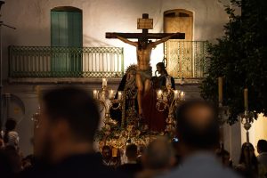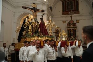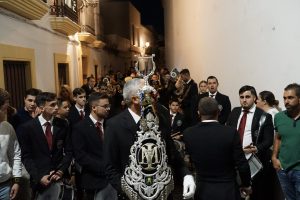 Cientos de devotos de Los Barrios acompañaron anoche, sábado, a la Hermandad del Santísimo Cristo de la Buena Muerte, María Santísima del Mayor Dolor y San Francisco de Asís en su salida procesional de Alabanza celebrada con motivo del 75 aniversario de la fundación de la cofradía.