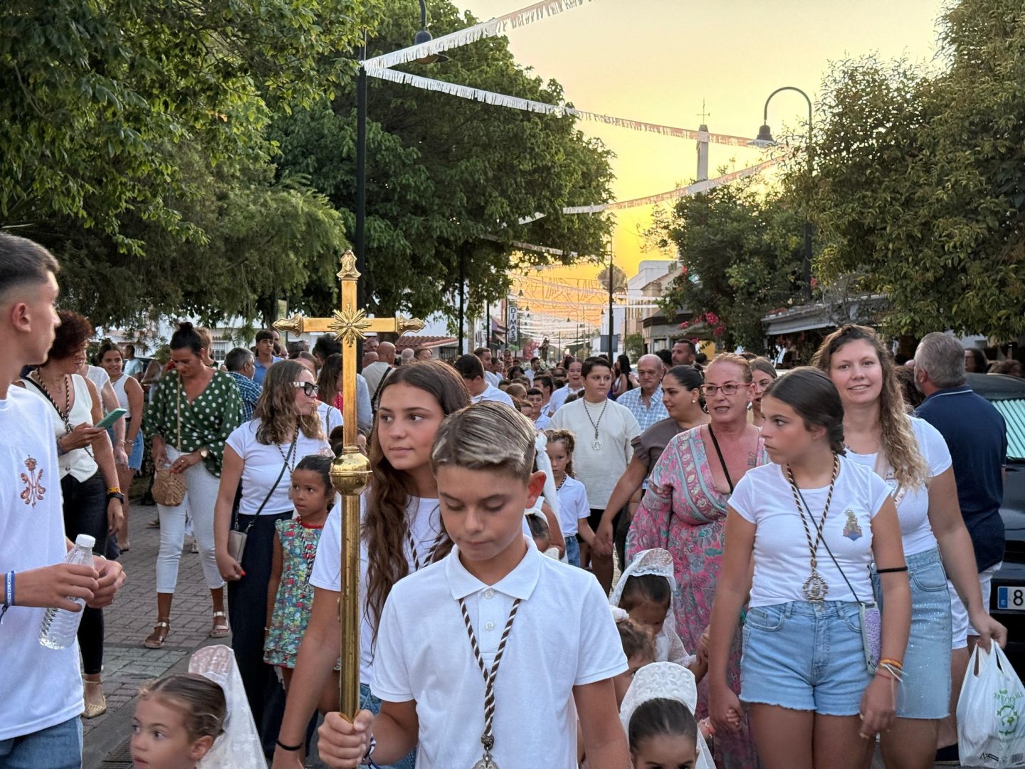 La imagen de la Virgen ha estado acompañada por numerosos vecinos y vecinas y familiares de estos niños en una procesión que ha recorrido las vías principales de Palmones.
