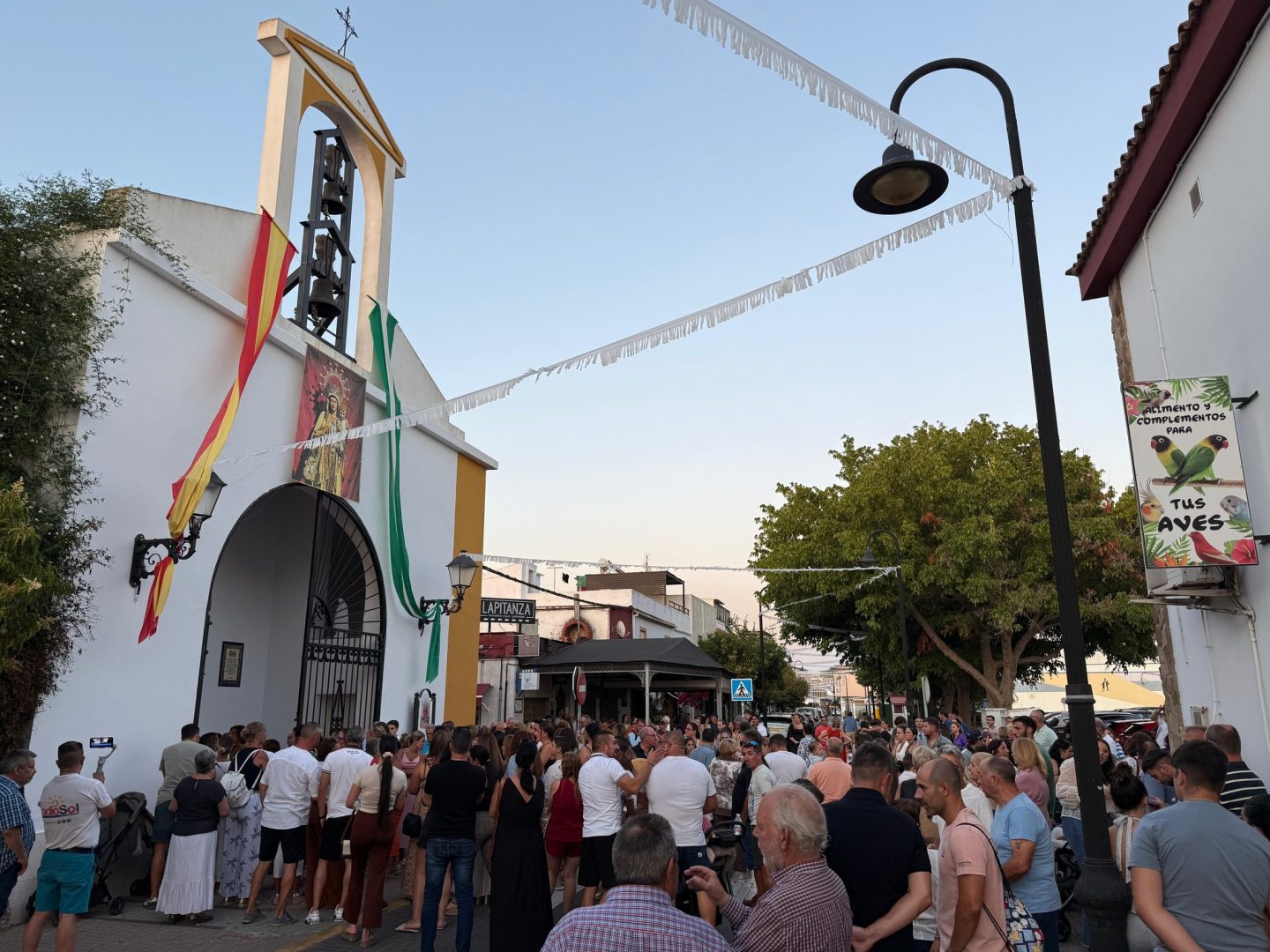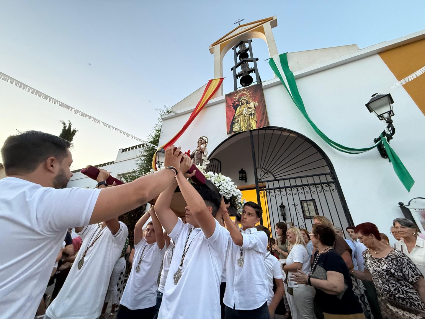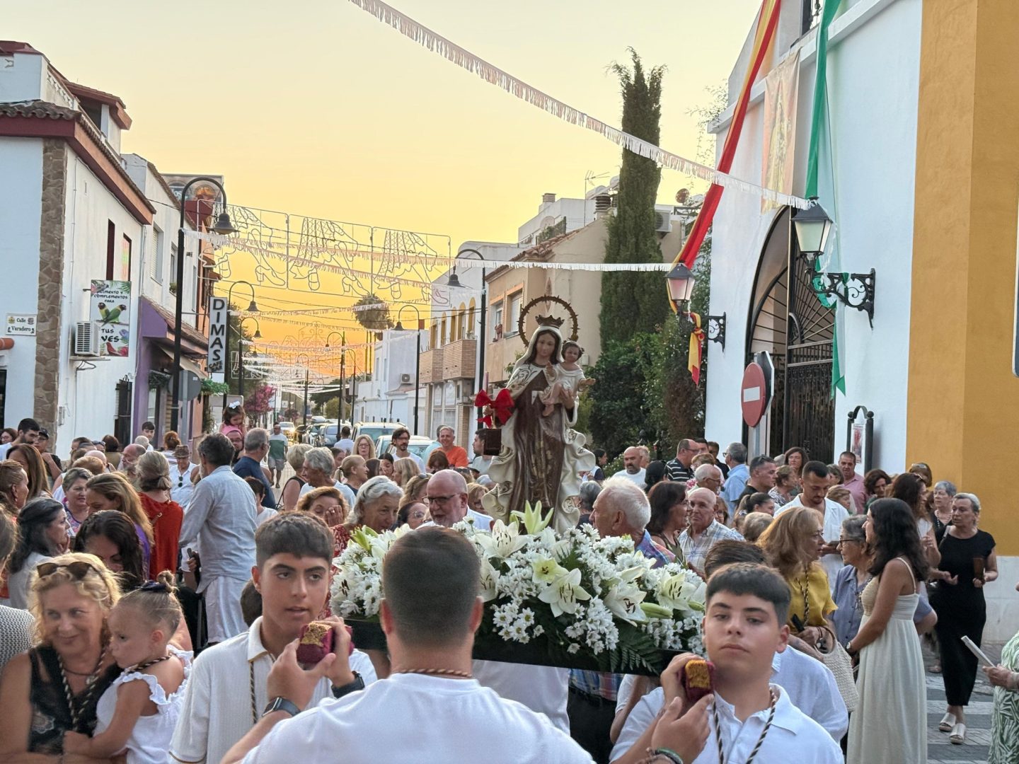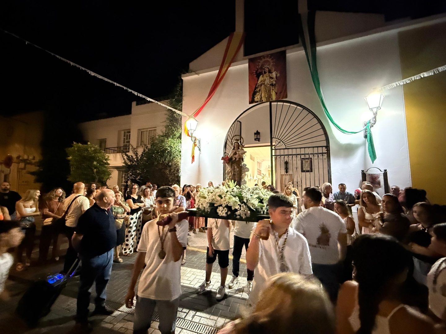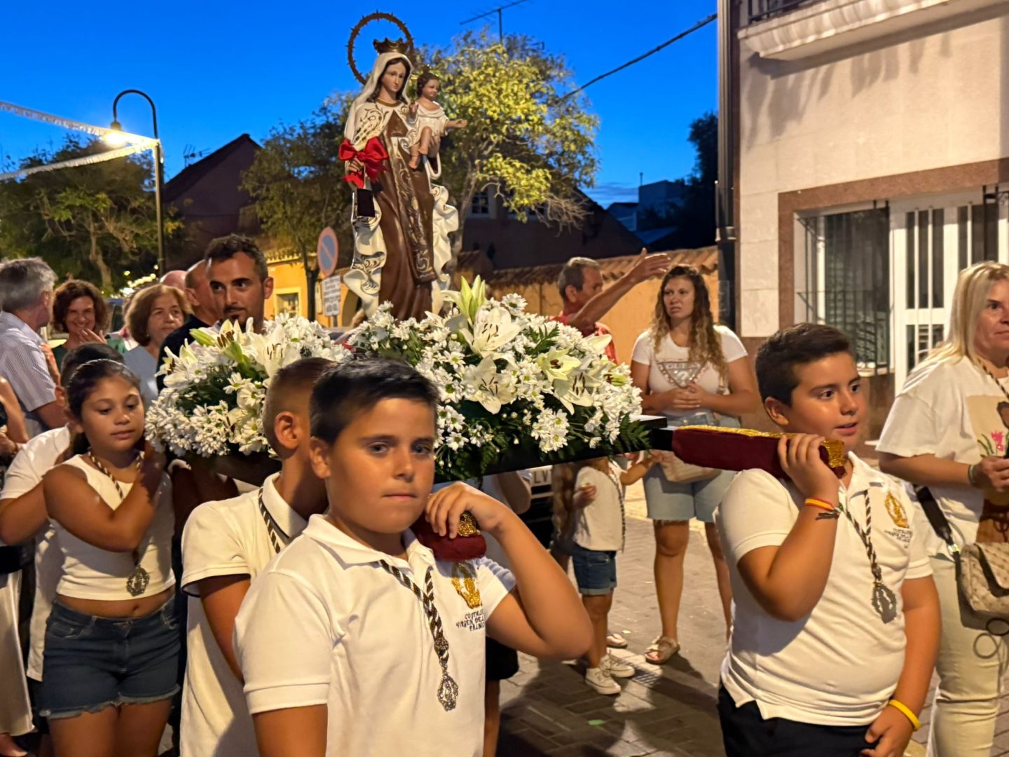 La imagen de la Virgen ha estado acompañada por numerosos vecinos y vecinas y familiares de estos niños en una procesión que ha recorrido las vías principales de Palmones.