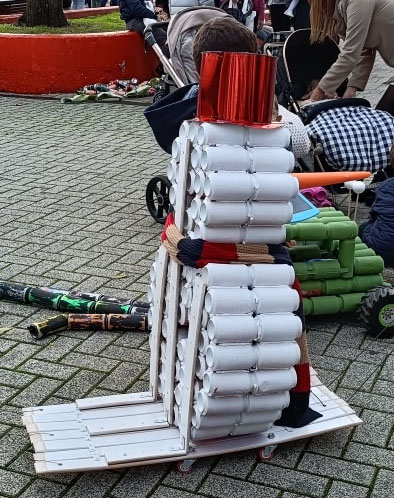 El pasacalles ha discurrido en un ambiente festivo y seguro, escoltado por la música y el entusiasmo de los más pequeños, quienes competían por ver quién lograba hacer más ruido. Entre los asistentes se podían observar auténticas obras de artesanía popular: desde sencillas hileras de botes de refresco hasta complejas estructuras que emulaban trenes, dragones y camellos, todas ellas fruto del trabajo conjunto entre padres e hijos durante los días previos. Esta implicación familiar es, según los responsables municipales, el motor que mantiene viva una seña de identidad tan propia de la comarca del Campo de Gibraltar.