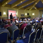 María José Domínguez presentó el acto de la presentación de la candidatura socialista para Los Barrios en un salón totalmente abarrotado de vecinos.