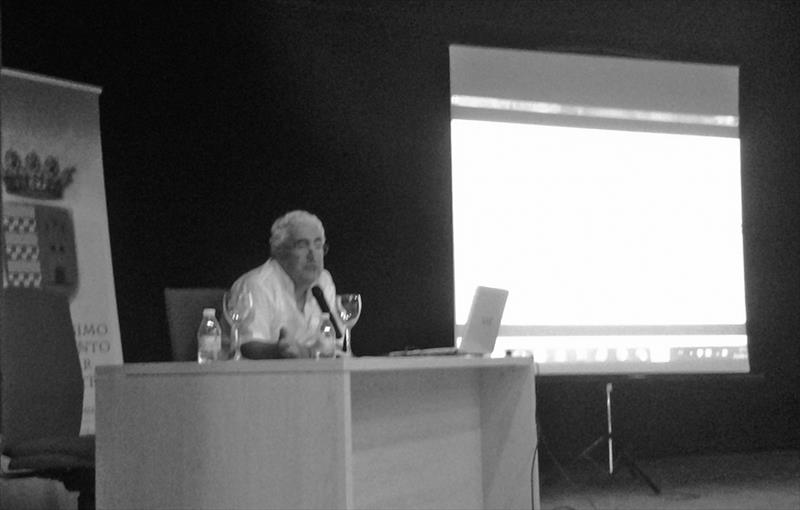 El profesor Algarbani disertó sobre el periodo de la segunda república, guerra civil y posguerra en Castellar de la Frontera, profundizando en las singularidades de este pueblo del interior de la comarca. A través de una proyección en power point ofreció datos sobre la vida y la política local en aquellos años, he hizo un análisis de la represión ejercida sobre todo sobre la población jornalera de este municipio marcado por tener un latifundio en manos de la casa de Medinaceli que ocupaba un 97% de la superficie del término municipal.