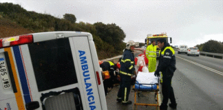 Vuelca una ambulancia, de Tarifa a Algeciras, con un paciente