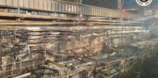 El fuego arrasa un tramo de la línea de laminación en...