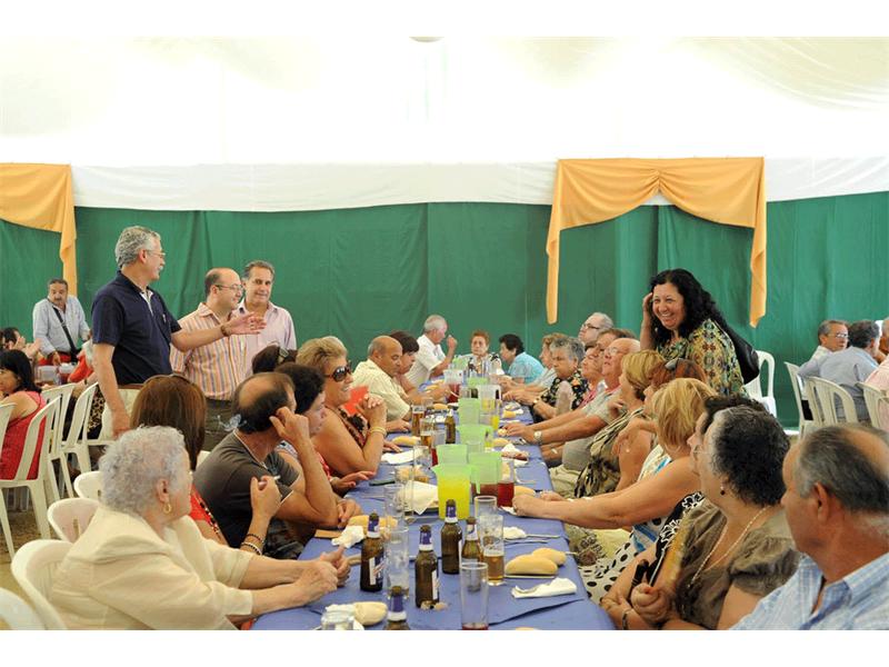 La Feria y Fiestas del pueblo de palmones continúa con sus actividades. En la tarde de hoy se ha celebrado la comida de los socios del Centro de Día de Palmones, que ha tenido lugar en la caseta municipal, han asistido el alcalde de Los Barrios, Juan Montedeoca, junto a la presidenta de la junta vecinal palmoneña, Pilar Olivares, y los ediles José Tocón y Alfonso Pecino.