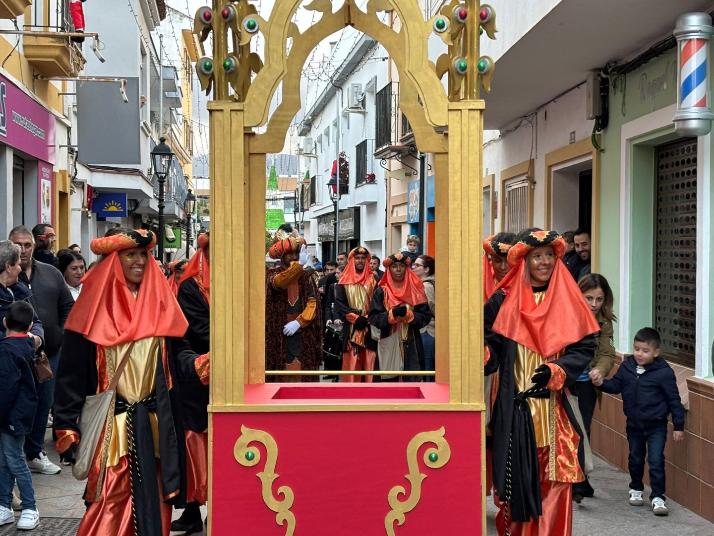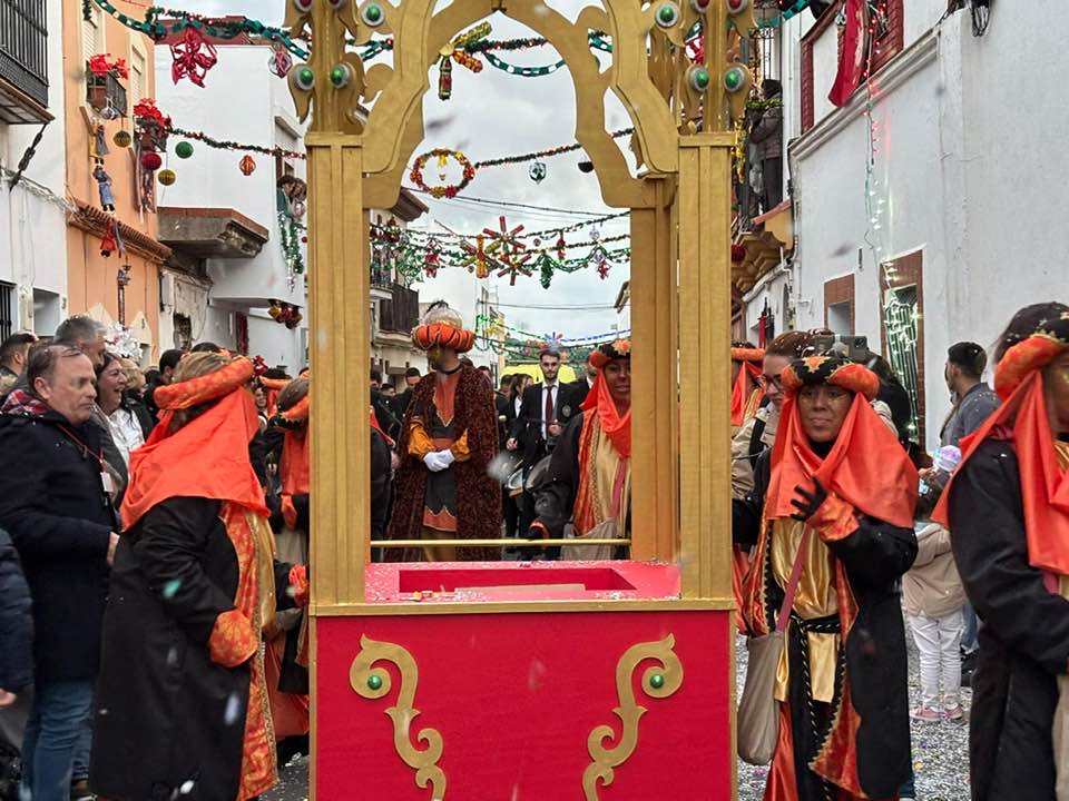 Antes de dicha recepción, el cartero real, acompañado de su cortejo de ayudantes, ha efectuado un recorrido por el centro de la villa, partiendo desde el Paseo de la Constitución, hacia las 17:30 h., y pasando por las calles La Plata, Alta, Alcaría, Cervantes, Sol y Mayor hasta llegar a la céntrica Plaza de la Iglesia.