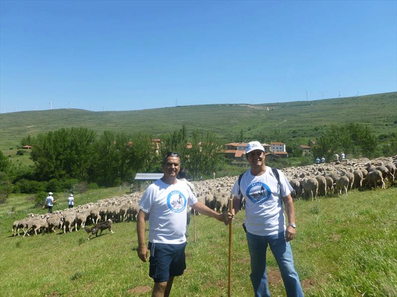 El día 09 de Junio en la ciudad de Soria a las 17:00 horas en el lugar indicado camino del Cañuelo, Juan Barreno y Manuel Jiménez nos unimos al grupo de pastores que lleva como lema “Somos trashumantes” comandados por Eduardo del Rincón, ayudantes, reporteros de distintos medios de comunicación y demás viajeros como nosotros, comienza el recibimiento donde Raquel Soria miembro de la Mancomunidad nos hace entrega de una camiseta y una gorra para estar bien identificados y en una gran merienda donde empezamos a conocernos todos los que íbamos a caminar y conducir el ganado a su propio ritmo, iniciamos esta nueva experiencia para nosotros, atravesamos la bella ciudad de Soria que estaba cortada al tráfico para tal fin con una multitud de gente que disfrutaba y fotografiaba el evento, poco a poco salimos de Soria por las cañadas reales camino de Garray en cuyo término municipal se encuentran las ruinas de Numancia y en dependencias municipales una curiosa recreación de la resistencia numantina representada por muñecos de playmovil, por este pueblo pasa el rio Duero y desde tiempos medievales es un descansadero de ganado. En este bonito lugar fuimos recibido por su alcaldesa, tuvimos una magnifica cena tanto en lo gastronómico como en la convivencia y a la hora de dormir podíamos hacerlo al raso o en las instalaciones municipales donde cenamos.