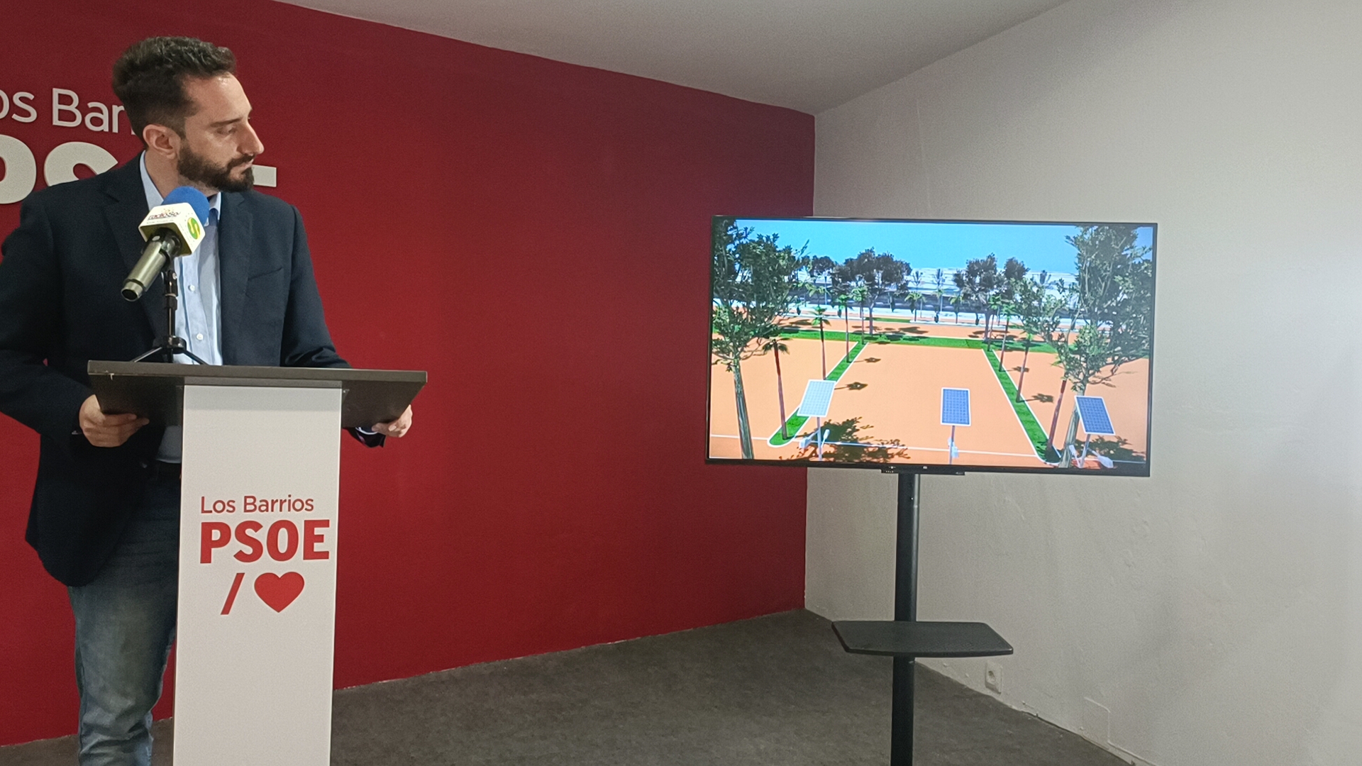 Daniel Perea ha presentado hoy ante los medios de comunicación, el proyecto del PSOE de Los Barrios para la mejora del recinto ferial dónde desarrollar 1.260 metros cuadrados de superficie fotovoltaica, una nave cubierta multidisciplinar de más de 700 metros cuadrados con eficiencia energética, y conseguir la optimización de recursos hídricos para adecentar las zonas verdes con la reutilización de aguas residuales.