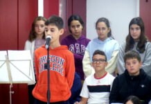 El profesor de música Javier Ríos y al alumna Ana Chicón recordaron ante el alumnado de 1º de ESO el Pasodoble ‘Era un 4...