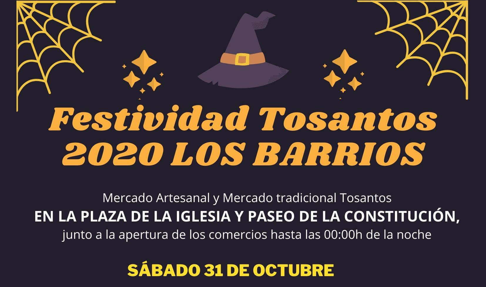 El sábado 31 de octubre se celebrará un mercadillo artesanal que estará ubicado en el Paseo de la Constitución y en la Plaza de la Iglesia. “Hemos elegido dos ubicaciones para que los puestos estén más repartidos y evitar las aglomeraciones de personas. Un mercadillo que cumplirá, al igual que el que tenemos los sábados, con las medidas higienicosanitarias frente al Covid19”, apunta Pérez Cumbre.