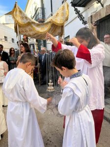 Representantes de las distintas hermandades del municipio y de la comunidad parroquial procesionaron por el casco urbano, adornadas con diversos altares en los que hemos visto varias imágenes, entre ellas la de San Isidro, patrón del pueblo de Los Barrios.