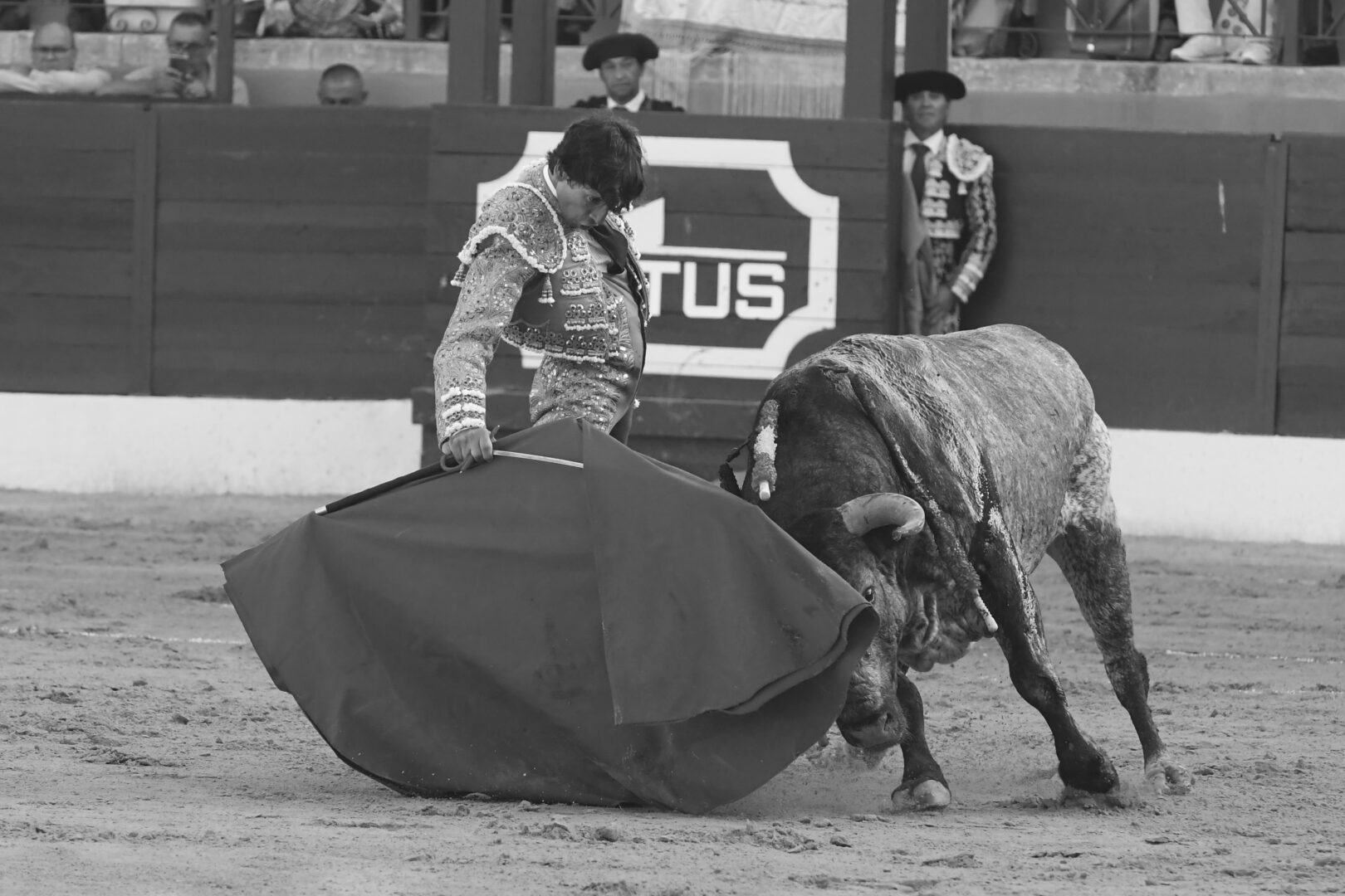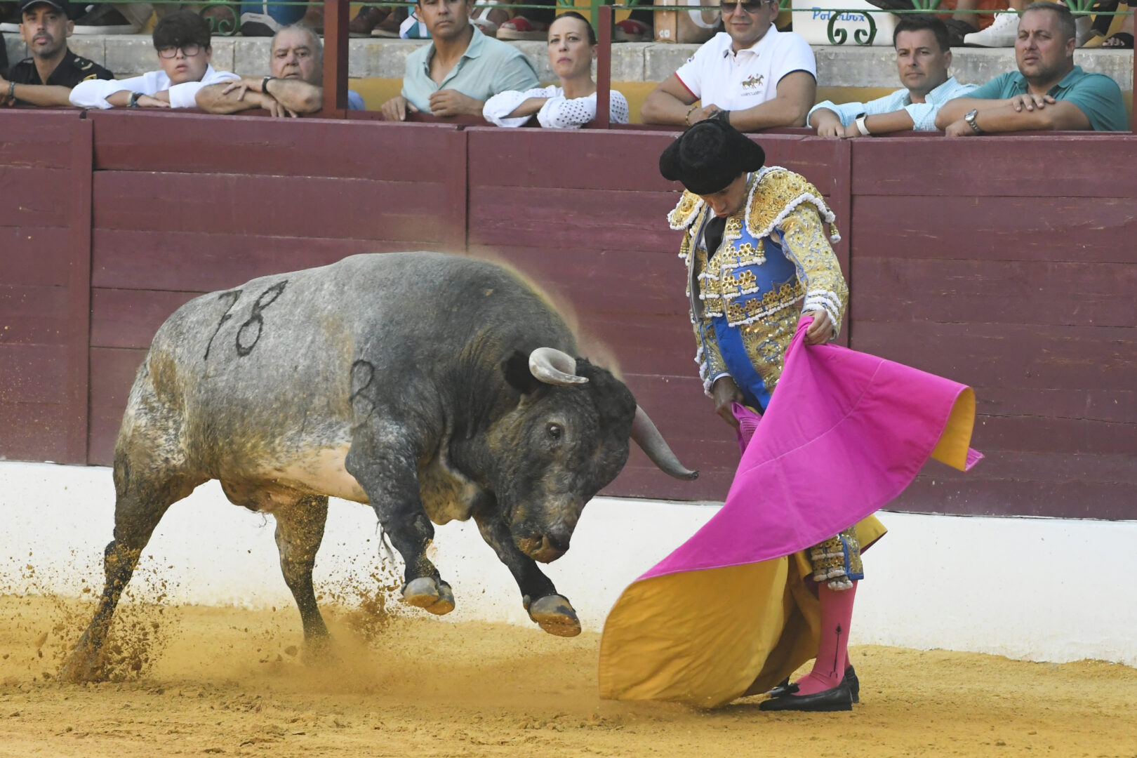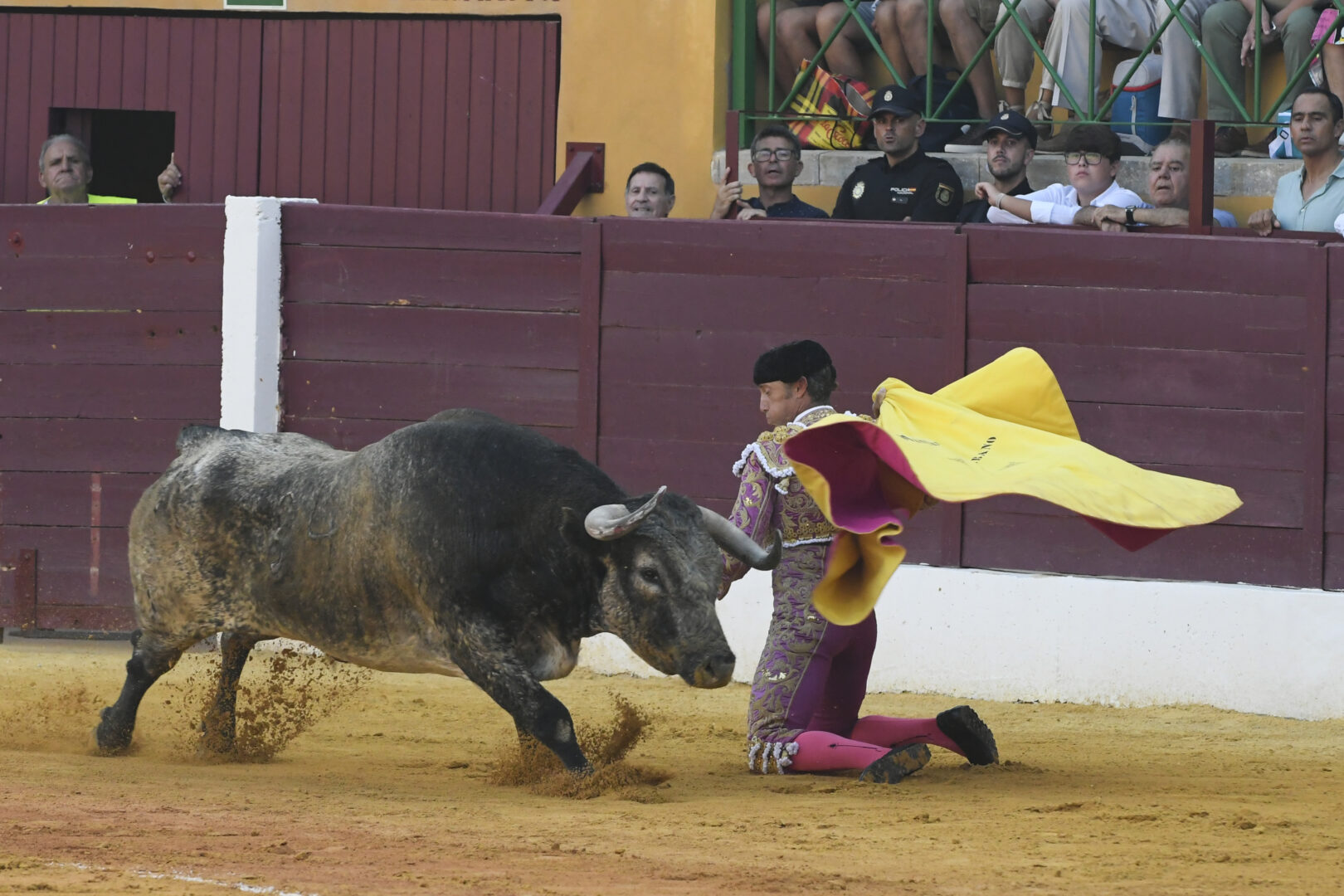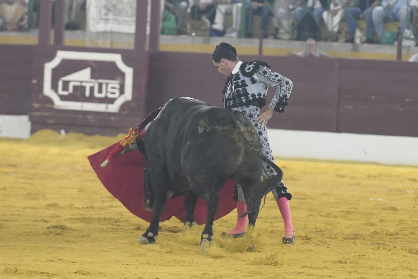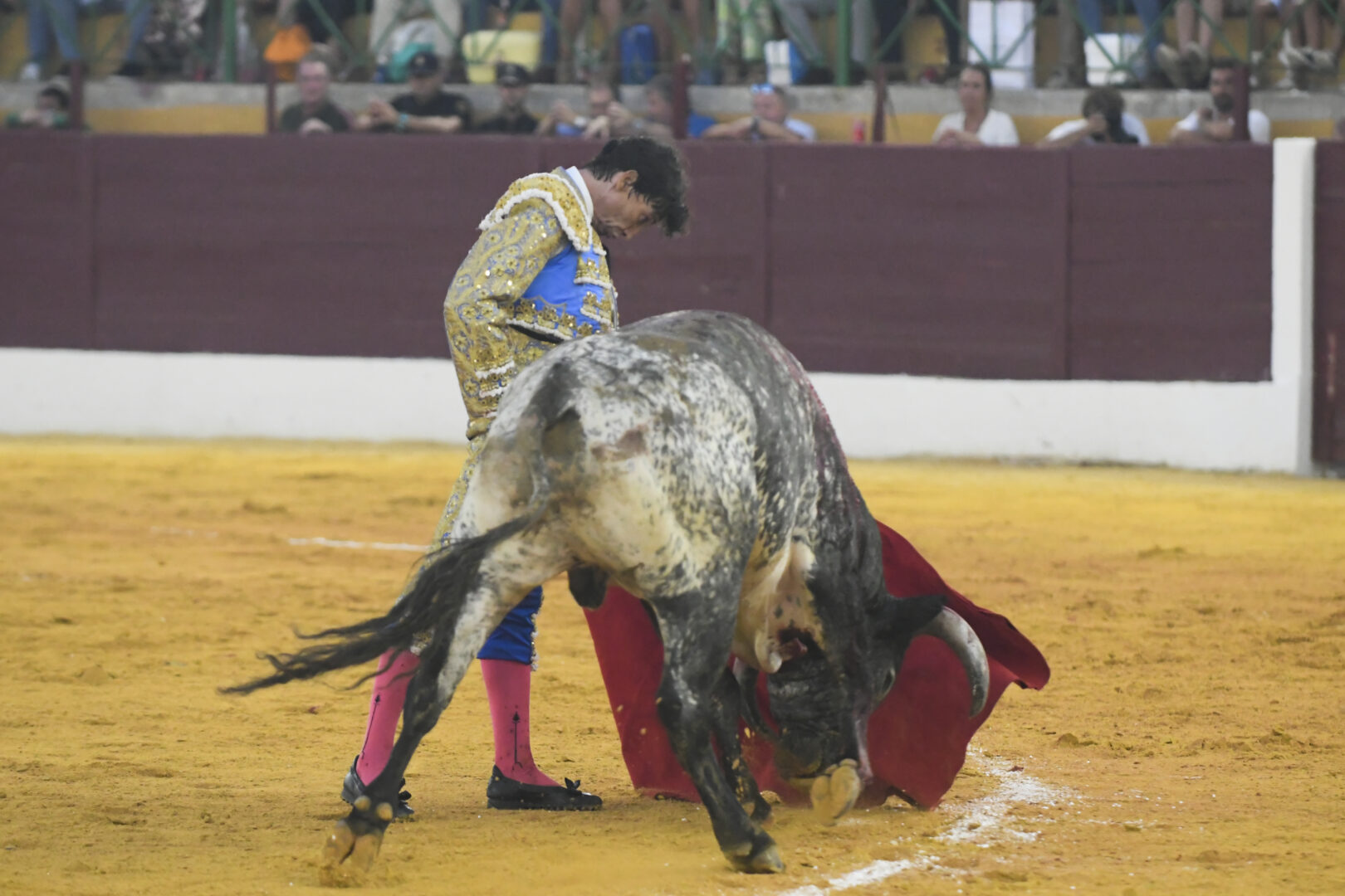 Manuel Escribano, oreja en el único que mató, de carmesí y oro.