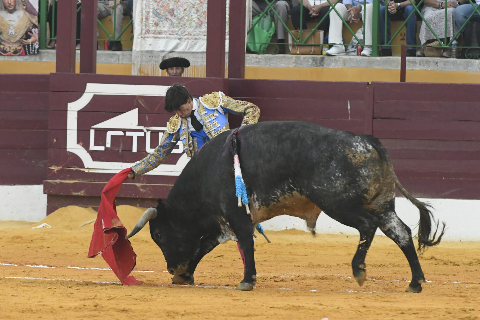 Curro Díaz, oreja, oreja y palmas en el que mató por Escribano, de azul pavo y oro.
