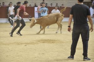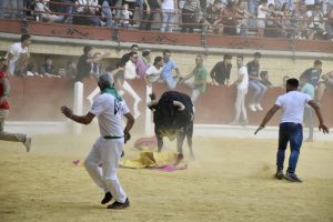 Tras el desencajonamiento de los astados, que ha tenido lugar a la una del mediodía de hoy, la villa ha empezado a celebrar esta tarde su tradicional fiesta del Toro Embolao, coincidiendo con los dos días finales de la Semana de Pasión en la localidad. Y en esta ocasión con la novedad de que se ha podido recuperar para el desarrollo del evento la plaza de toros ‘La Montera’, que, como era de esperar, ha estado prácticamente llena de público.