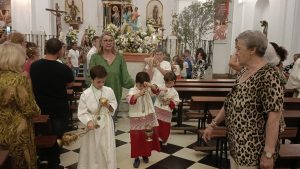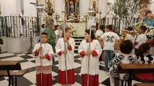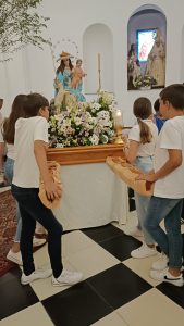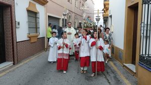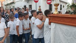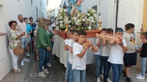 [FOTO GALERÍA] Los pequeños portan la imagen de la Divina Pastora desde la Parroquia hasta la Residencia de Ancianos