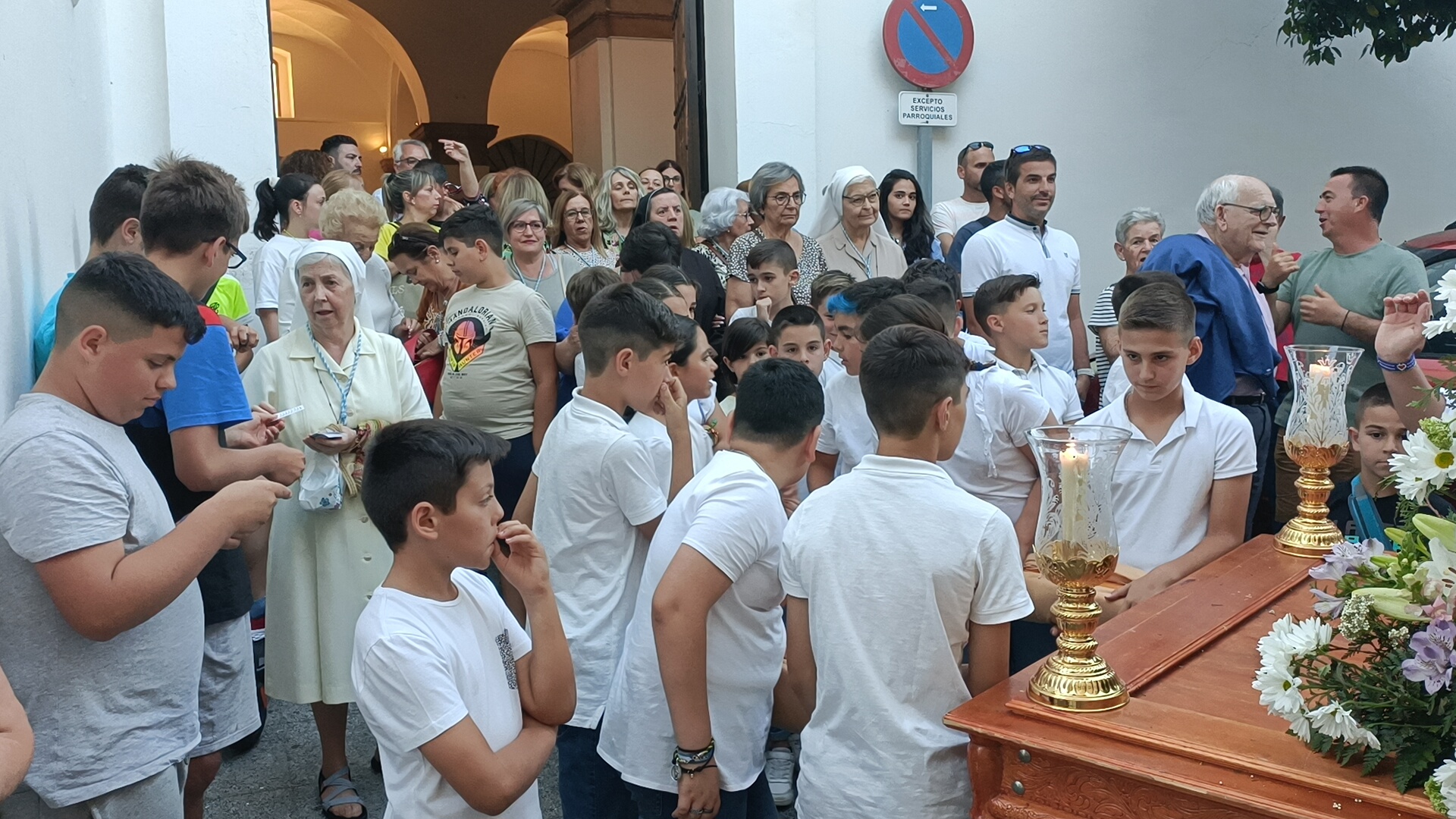 [FOTO GALERÍA] Los pequeños portan la imagen de la Divina Pastora desde la Parroquia hasta la Residencia de Ancianos