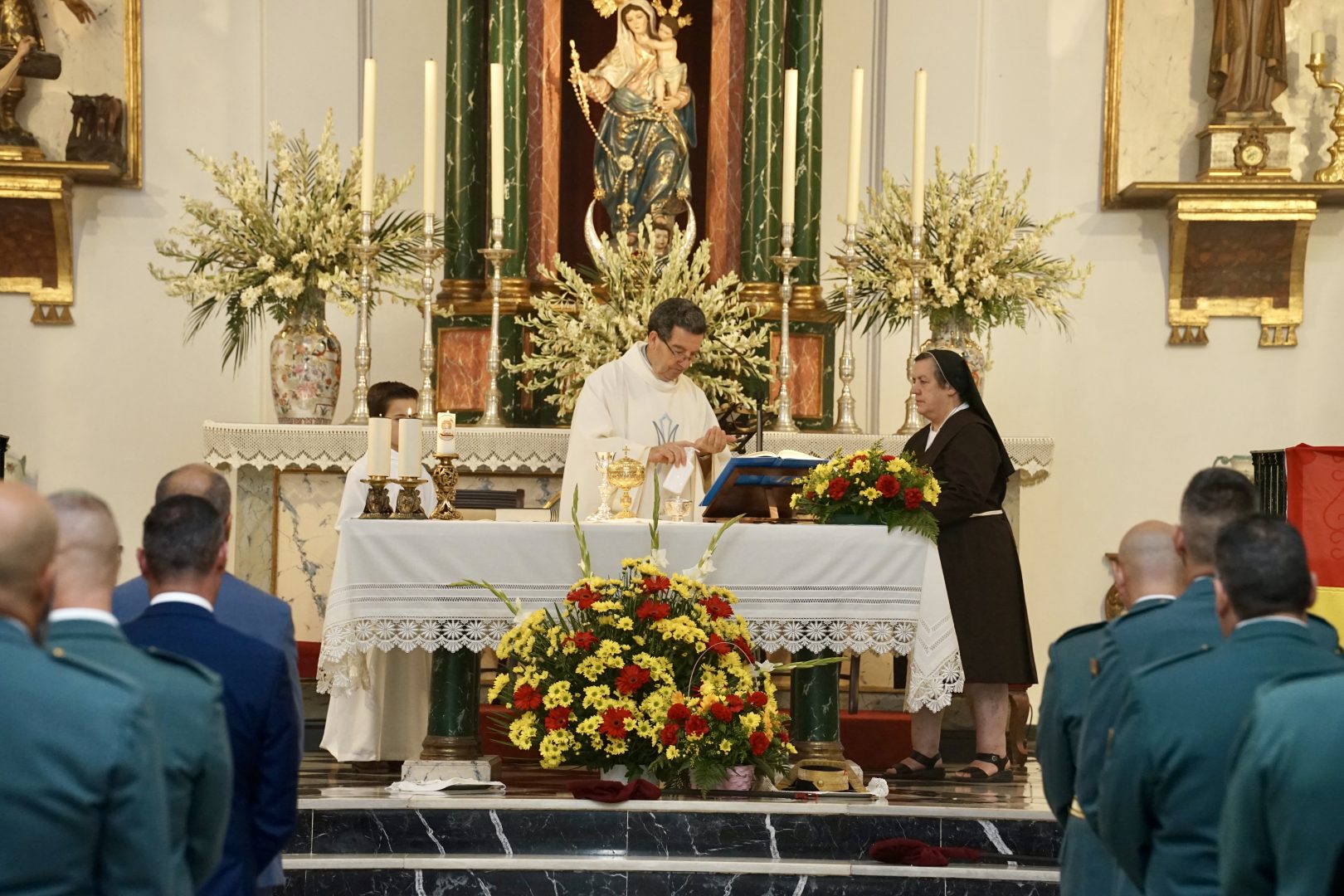 El Puesto Principal de Los Barrios de la Guardia Civil ha celebrado este sábado en la parroquia San Isidro, como es tradición, la festividad de su Patrona, la Virgen del Pilar, en una jornada marcada por la emotividad y el recuerdo de sus compañeros caídos en acto de servicio.